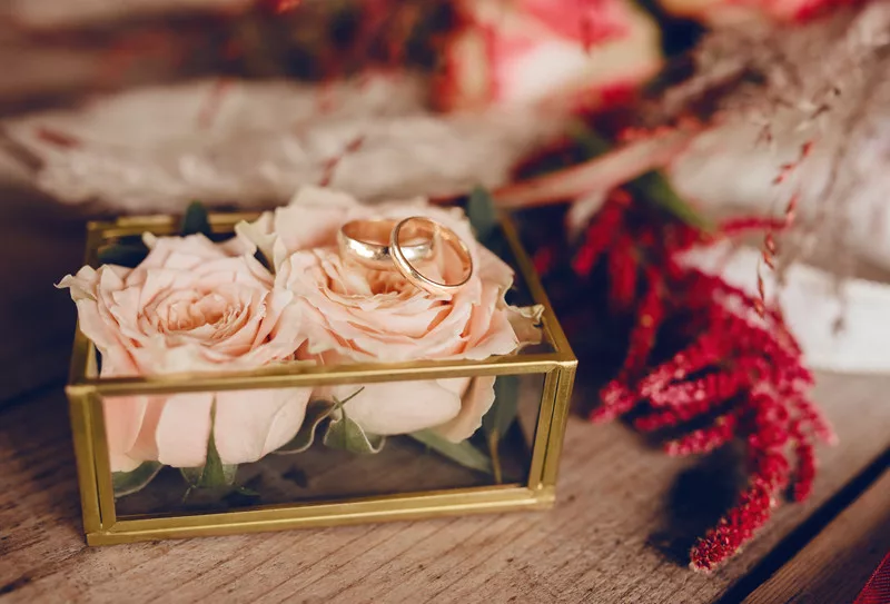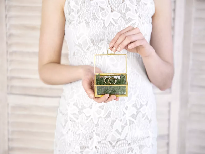 Jegygyűrűtartó üvegdoboz arany 9x5,5x4 cm