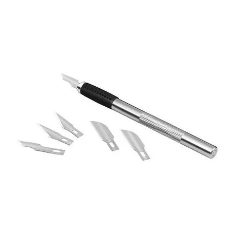 Kézműve szike - Szike 6 különböző pengével. Beépített mágnessel a fogantyú végén, hogy a pengék könnyen eltávolíthatók legyenek a dobozból. Kemény műanyag tárolódobozban.