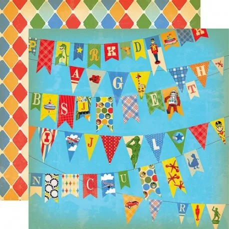 Scrapbook papír 12" (30 cm) - Toy Box / Toy Banner - kétoldalas (1 lap)