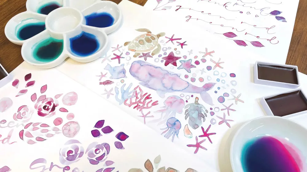 A színek intenzívek, telítettebbek és átlátszatlanabbak, mint az európai vagy amerikai akvarellek esetében.