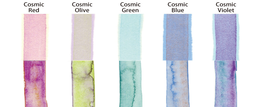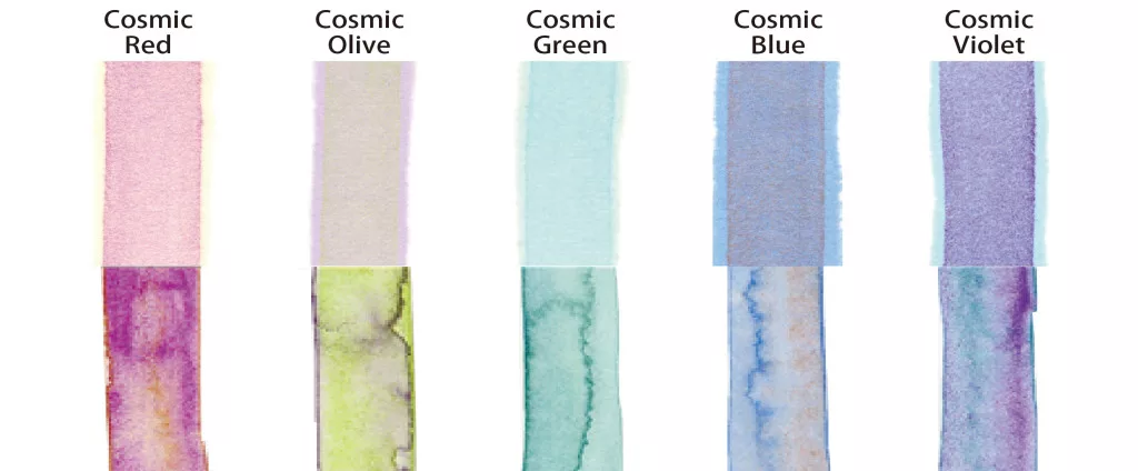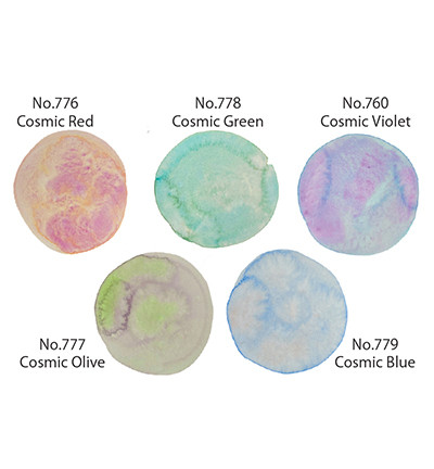 A Granulating Colors II készletben találhható árnyalatok: 776 Cosmic Red, 778, Cosmic Green, 760 Cosmic Violet, 777 Cosmic Olive, 779 Cosmic Blue + 1 üres