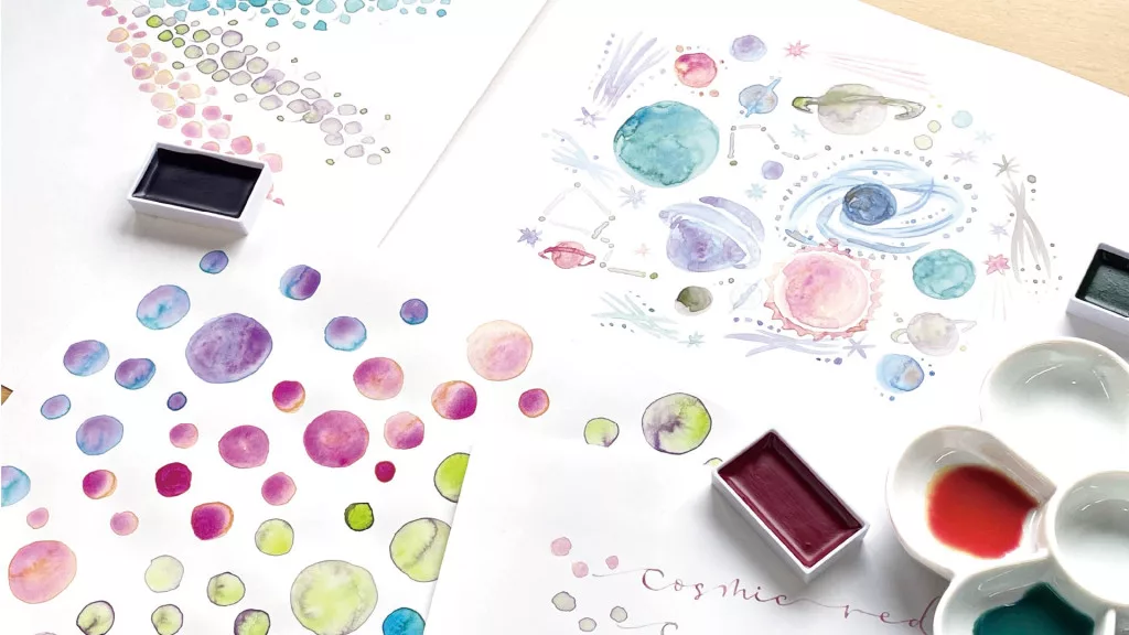 A színek intenzívek, telítettebbek és átlátszatlanabbak, mint az európai vagy amerikai akvarellek esetében.