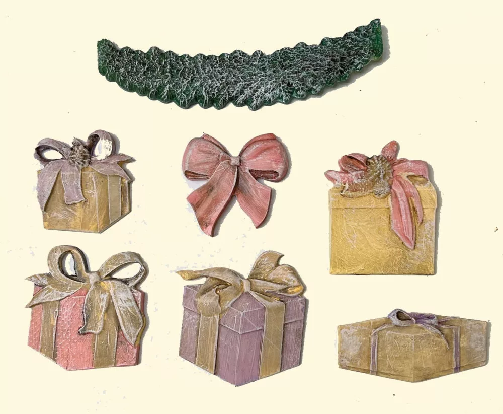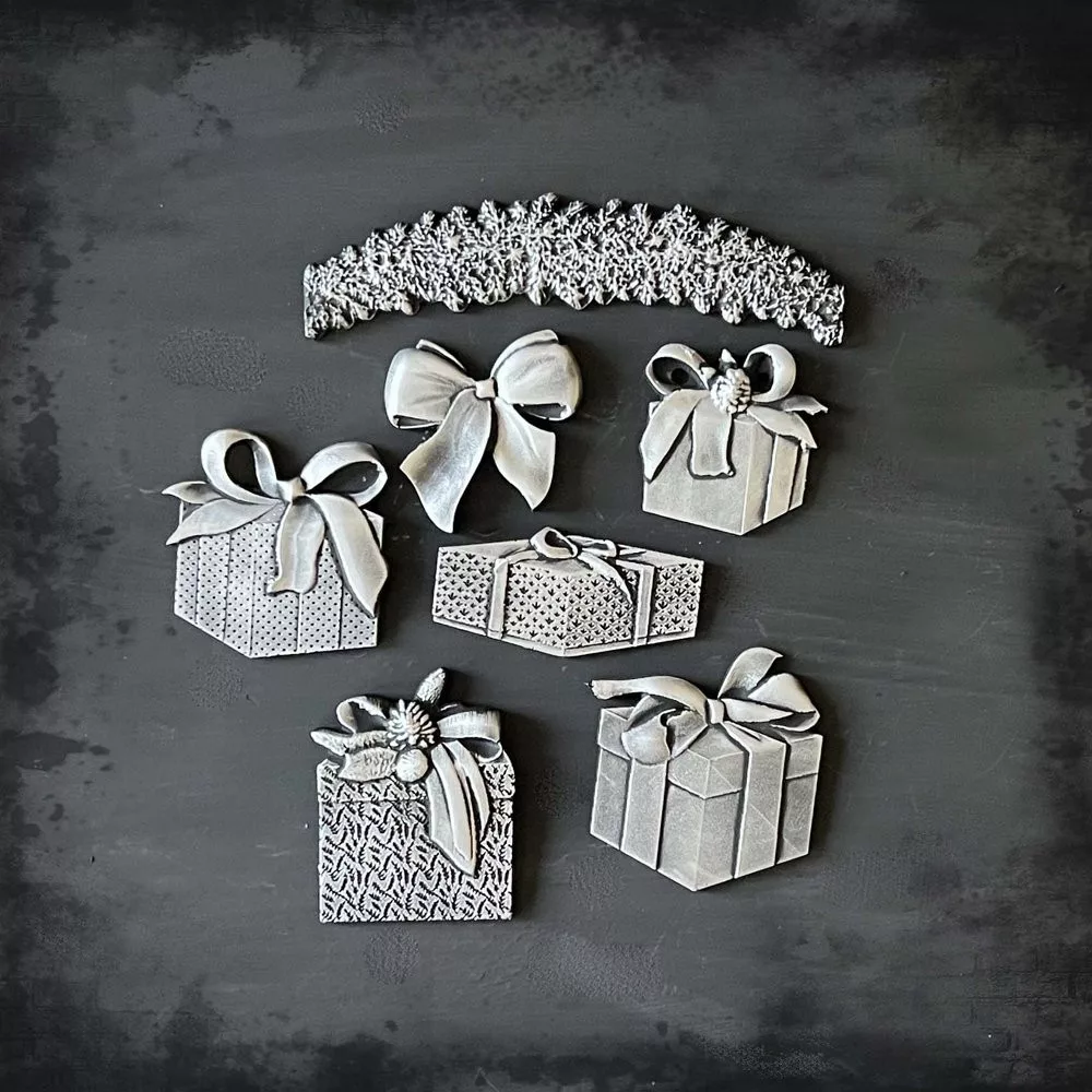 Karácsonyi ajándékcsomagok öntőforma. Mérete: 12,7 x 20,3 x 1 cm.