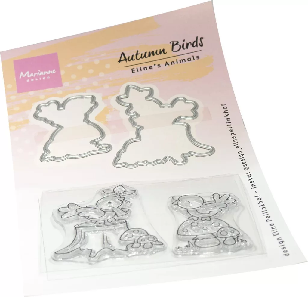 Vágósablon bélyegzővel Stamp & Dies Eline's Animals - Autumn Birds. Mérete: 2 bélyegző 45 x 55,5 mm/ 2 dies 47,5 x 58 mm