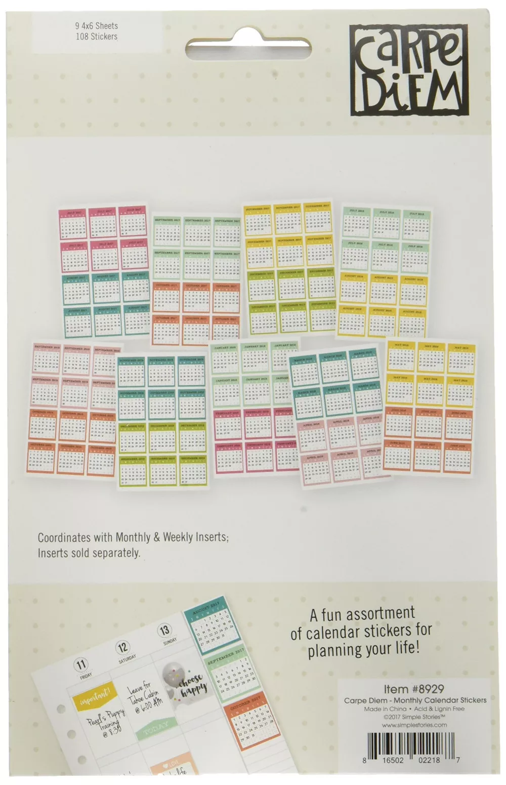 Matrica készlet , Carpe Diem / Mini Monthly Calendar Stickers - jul 2017  - dec 2018 (108 db)