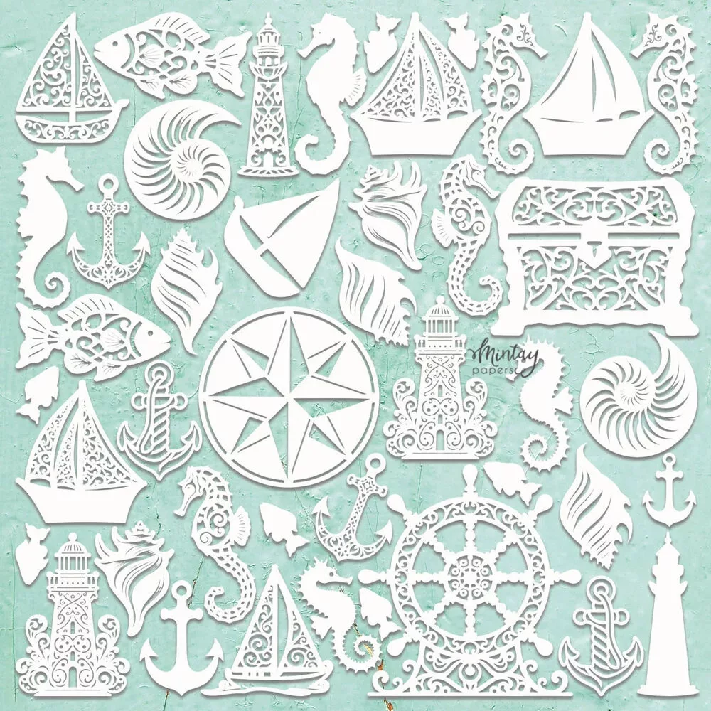 Mintay Papers Chipboard 12" (30 cm) - Seashore Filigree - Chippies Decor (1 ív).