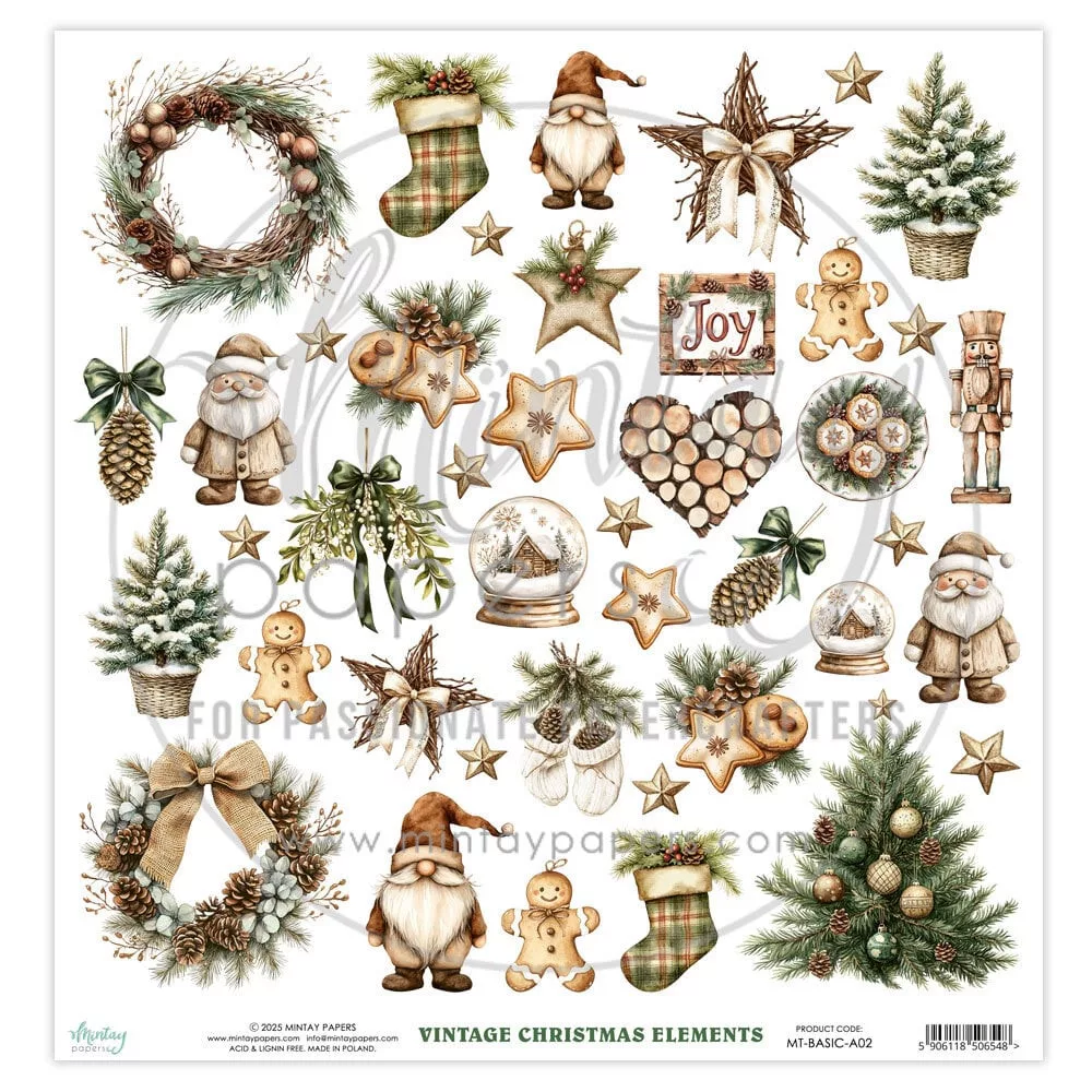 Mintay Papers Rustic Christmas Scrapbook kivágíóív 12" (30 cm) 1 ív