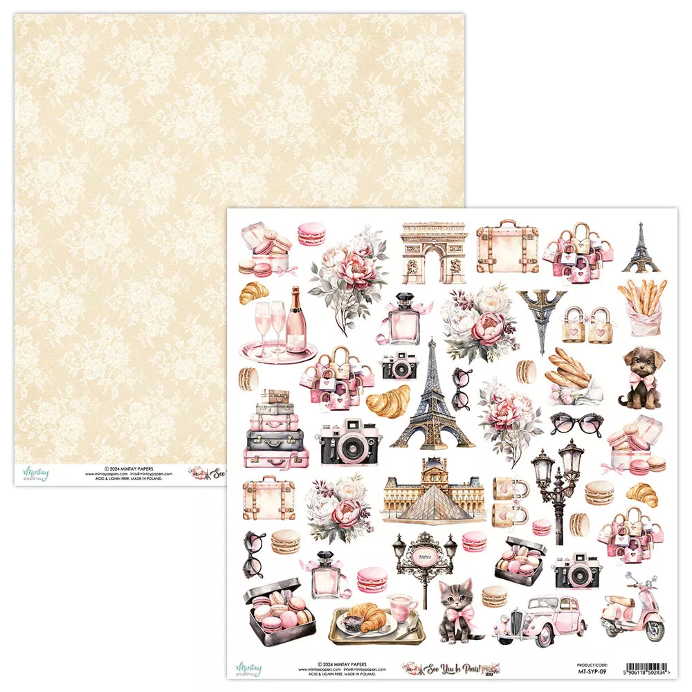 Mintay Papers See You in Paris Scrapbook papír Kivágóív Elements 12" (30 cm) 1 lap.