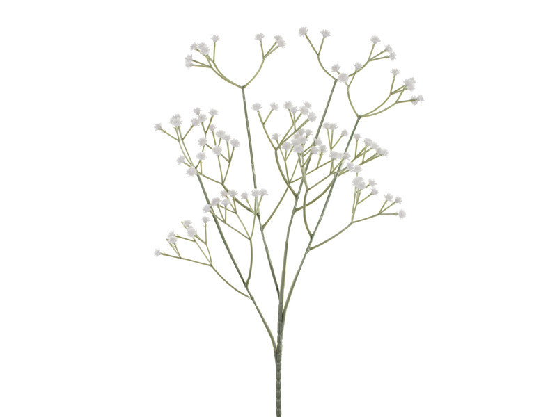 Ez a fehér színű, apró virágokból álló rezgő szál tökéletes választás, ha romantikus, természetes hatású kompozíciókat szeretnél készíteni. A csomagban egy szál található, amely három virágos ágat tartalmaz – minden kis virág kb. 1 cm átmérőjű, a teljes szál pedig kb. 62 cm magas.