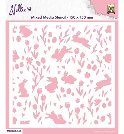 Nellie's Choice Stencil - Background Rabbit and Tulips - Mixed Media Stencils (1 db)