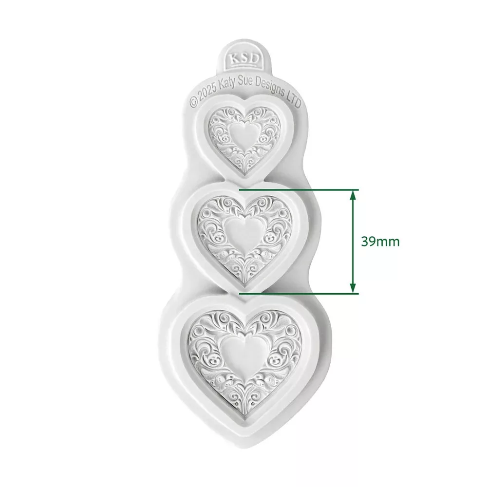 Ornate Heart Trio Szilikon öntőforma Katy Sue Designs Silicon Mould (1 db)