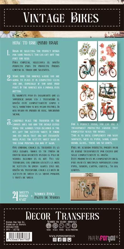 Papers For You Bikes Transzfer fólia Decor Transfers 6"X12" (15x30cm) 4 ív