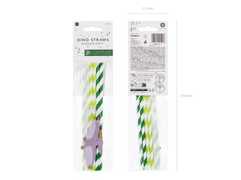 Papír szívószál Dínó party (6 db)