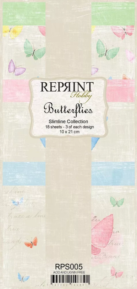 Papírkészlet 10x21 cm, Butterflies / Reprint Paper Pack (18 ív).