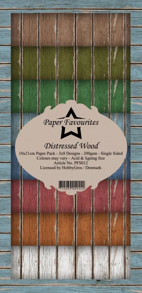 A Distressed Wood készlet 24 db 10 x 21 cm), egyoldalas, mintás scrapbook papírt tartalmaz. Savmentes és ligninmentes / 200 gsm