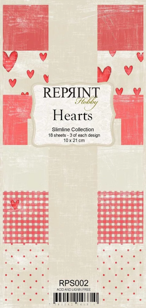 Papírkészlet 10x21 cm, Hearts / Reprint Paper Pack (18 ív)