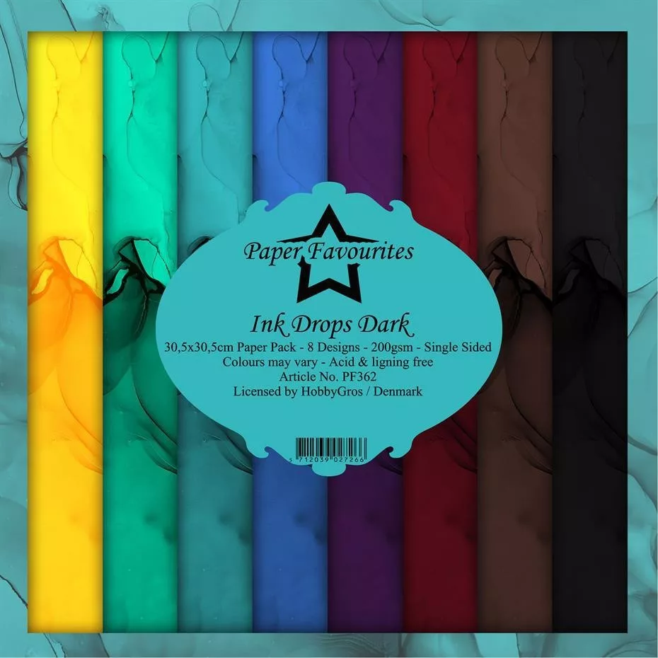 A Ink Drops Dark készlet 8 db 12x12 Inch (30.48 x 30.48 cm), egyoldalas, mintás scrapbook papírt tartalmaz. Savmentes és ligninmentes / 200 gsm