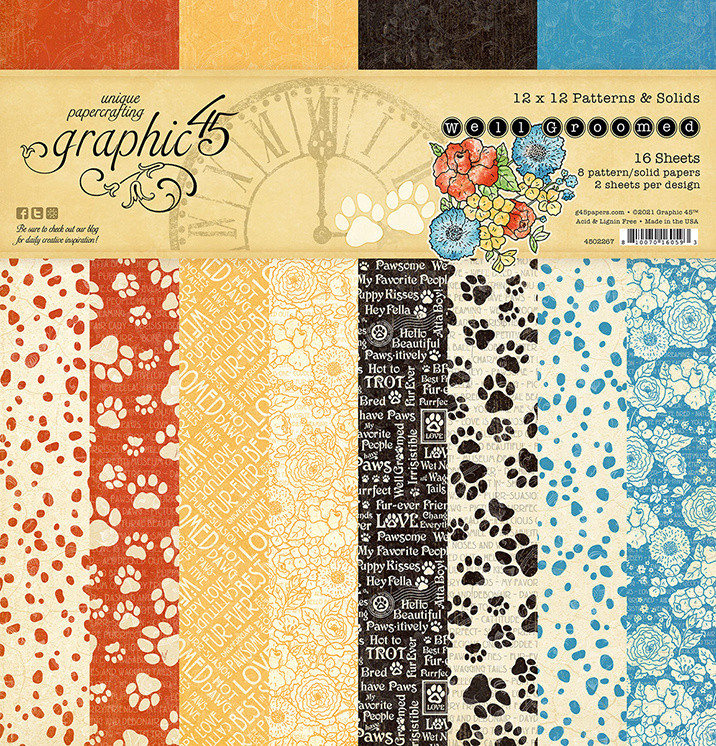 Papírkészlet 12" (30 cm), Well Groomed/ Graphic 45 Patterns & Solids (16 lap).