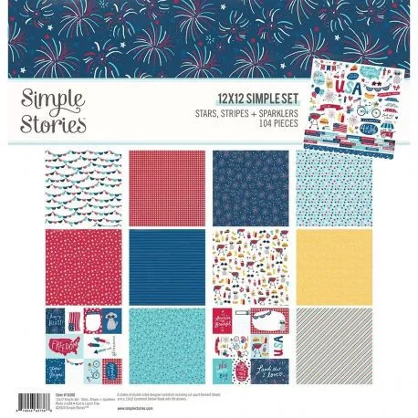 Papírkészlet 12", Simple Stories Stripes + Sparklers / Collection Kit - (1 csomag)