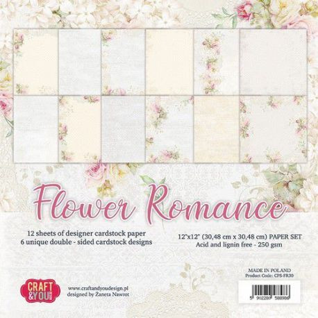 Papírkészlet 12x12, Craft&You Paper Set / Flower Romance -  (12 lap)