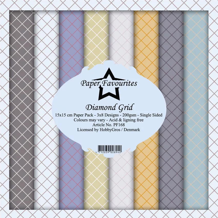 A Diamond Grid készlet 24 db 6x6 Inch (15 x 15 cm), egyoldalas, mintás scrapbook papírt tartalmaz. Savmentes és ligninmentes / 200 gsm