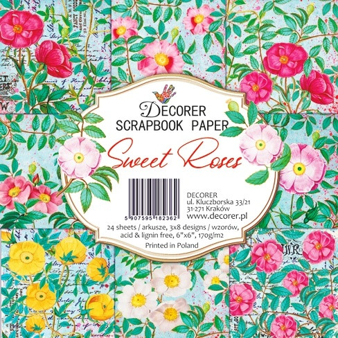 Papírkészlet 6" (15 cm), Sweet Roses / Decorer Scrapbook Paper (24 ív)