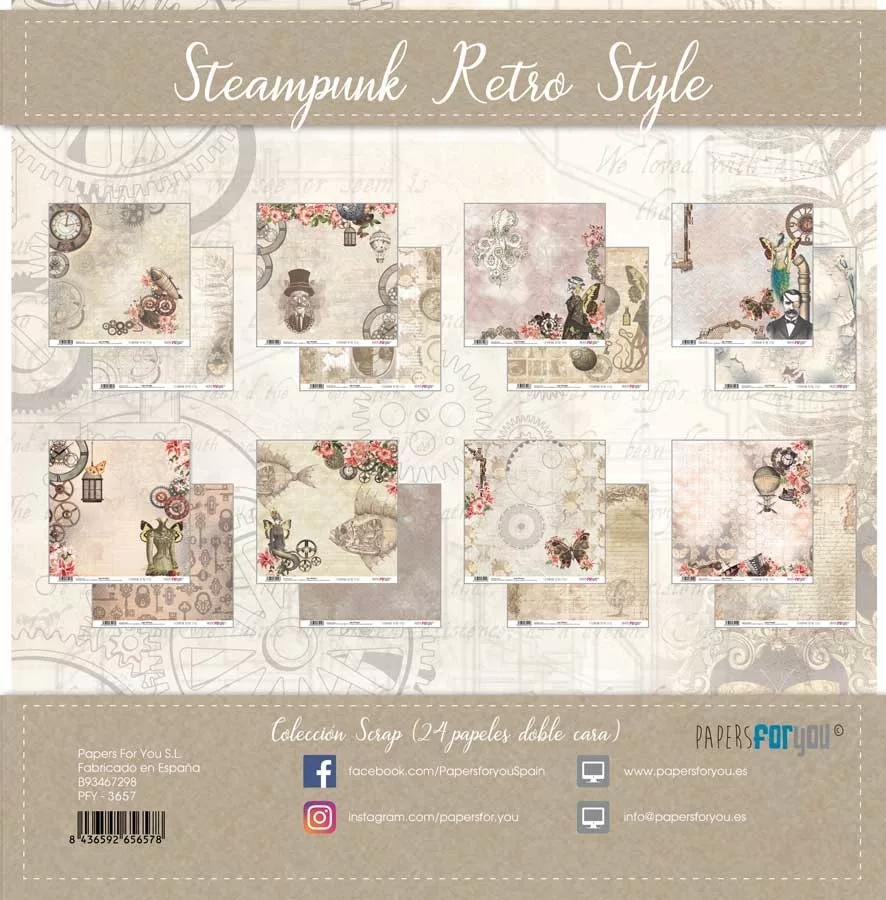 Papírkészlet 6.6" (17 cm), Steampunk Retro Style / Papers For You Scrap Paper Pack (24 ív)