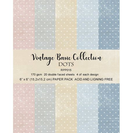 Papírkészlet - Dots Basic. Tartalom: 20 lap / 6"x6" (15.2 cm * 15.2 cm) / 170grs.