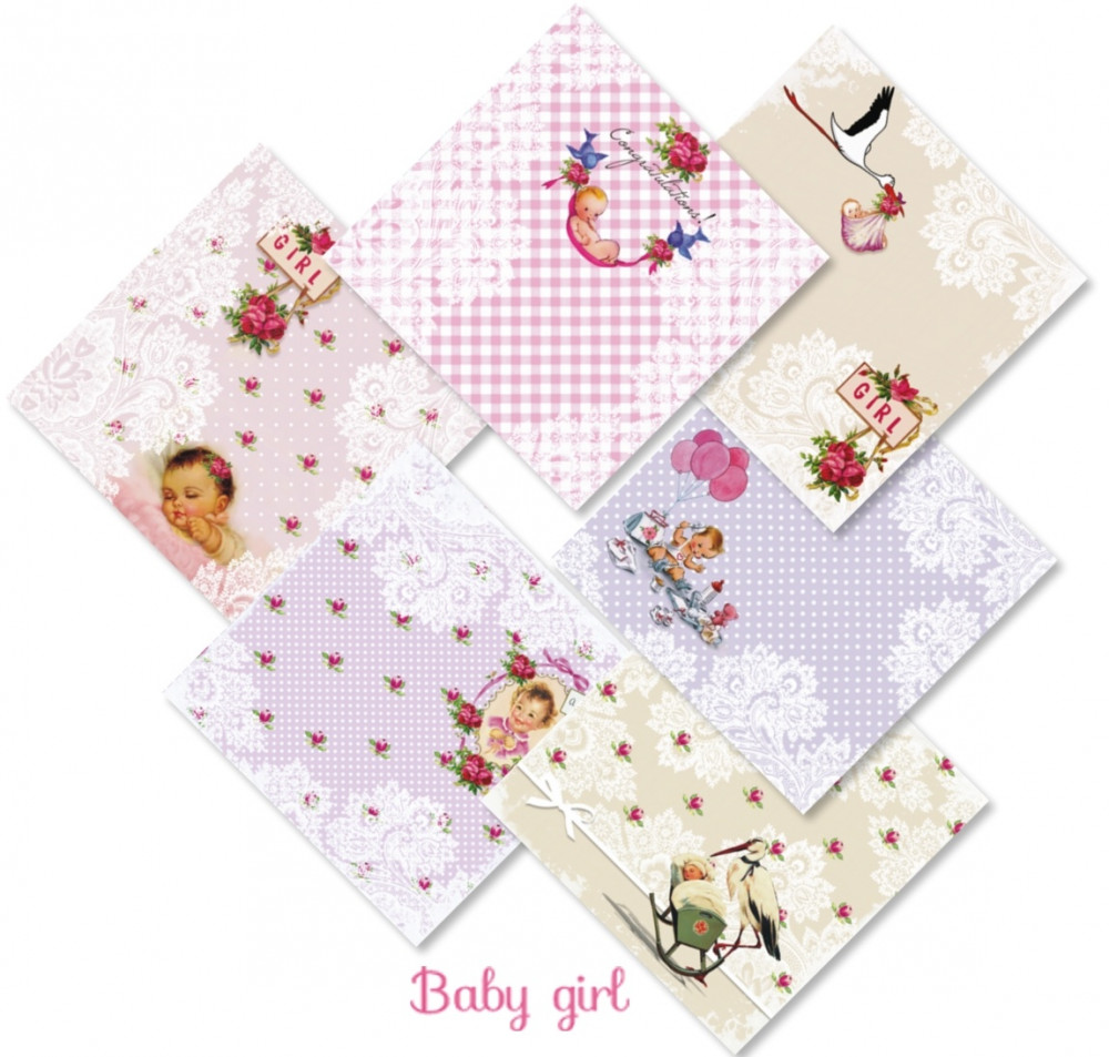 Papírkészlet 8" (20 cm), Baby girl / Decorer Scrapbook Paper (24 ív).