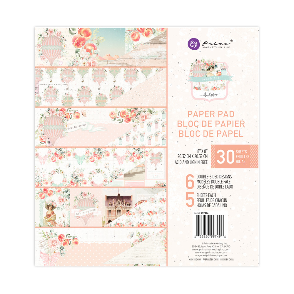 Papírkészlet 8" (20 cm), Peach Tea / Prima Marketing Paper Pad (30 lap)