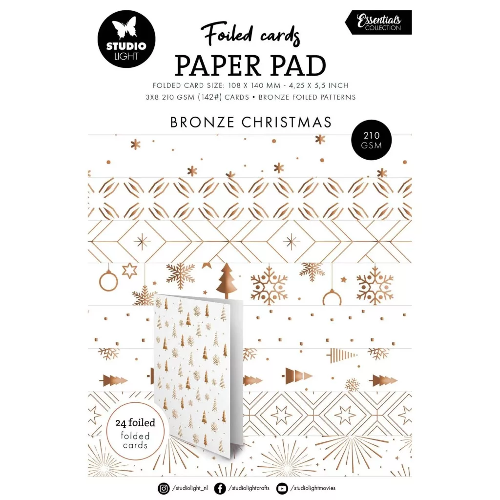 Papírkészlet Studio Light Bronze Christmas Essentials Foiled Cards Paper Pad (24 lap). Mérete: 24 ív / 140x216x5mm / 210grs