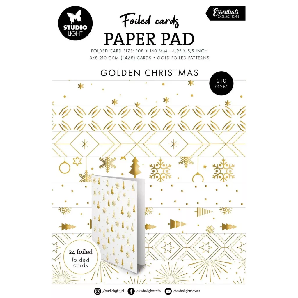 Papírkészlet Studio Light Golden Christmas Essentials Foiled Cards Paper Pad (24 lap). Mérete: 24 ív / 140x216x5mm / 210grs