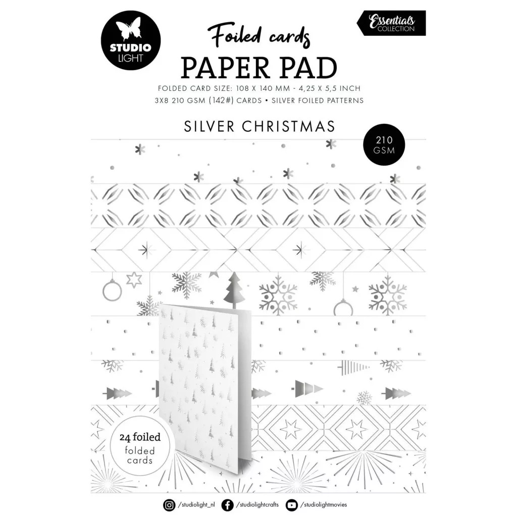 Papírkészlet Studio Light Silver Christmas Essentials Foiled Cards Paper Pad (24 lap). Mérete: 24 ív / 140x216x5mm / 210grs