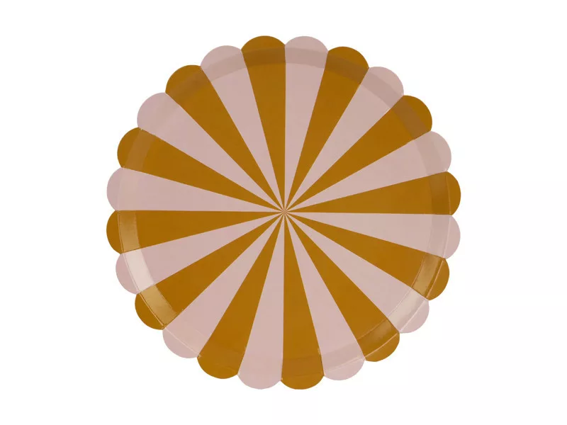 Tedd különlegessé az ünnepi asztalt ezzel a stílusos csíkos mintás papírtányér készlettel! A barna és rózsaszín színek harmonikus kombinációja tökéletes választás születésnapi partikhoz vagy bármilyen más ünnepléshez.