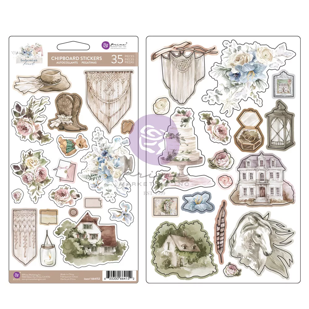 Prima Marketing Chipboard - Bohemian Heart - Chipboard Stickers (1 csomag)