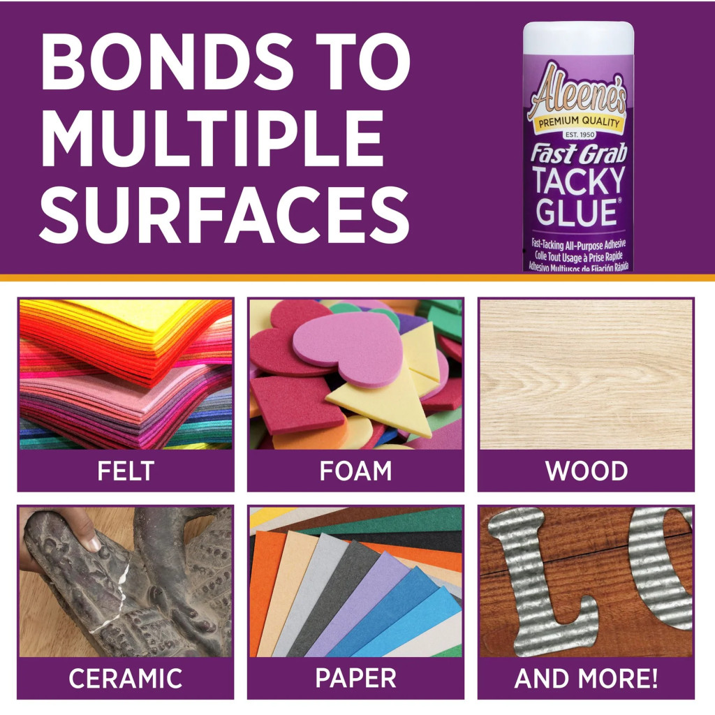 Az Aleene’s Always Ready Fast Grab Tacky Glue a kézművesek kedvence! A 118 ml-es (4 fl. oz.) ragasztó szupererős, extra sűrű formulával rendelkezik, amely azonnal megragadja a nehezen rögzíthető tárgyakat, és átlátszóra szárad. A praktikus no-cut adagolócsúcs és a fejjel lefelé állítható kupak gondoskodik arról, hogy mindig készen álljon a használatra.