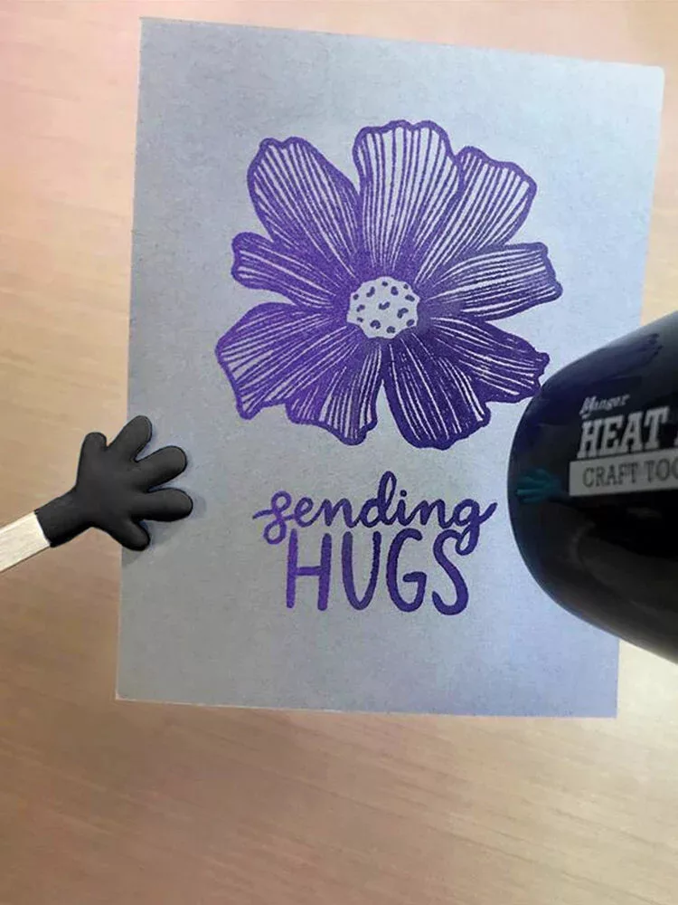 A hőre domborítás csodás technika, de gyakran jár együtt azzal a problémával, hogy a papírt kézzel kell tartani a hőlégfúvó alatt. Ez kényelmetlen, forró és könnyen hagyhat ujjnyomot a felületen. Erre kínál tökéletes megoldást a Ranger Hőálló papírfogó.
