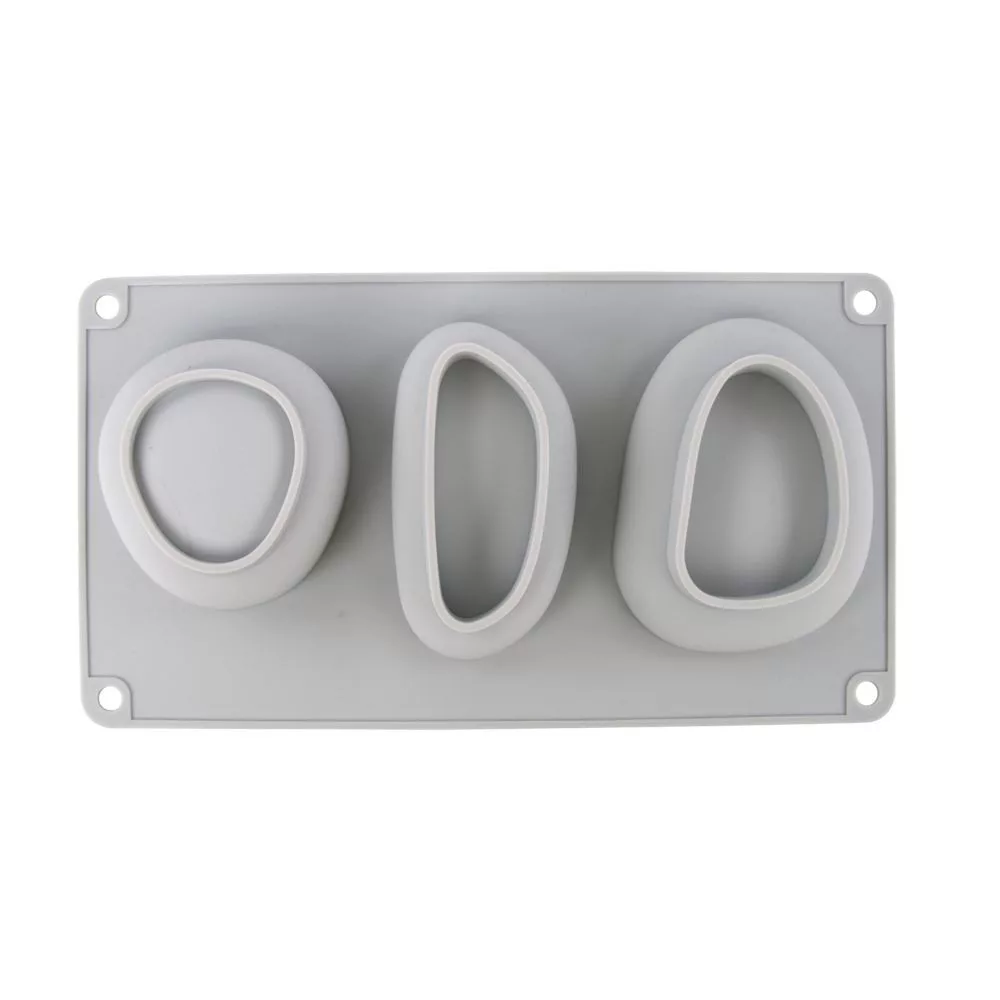 • Ez a szilikon öntőforma 3 különböző méretű kőmotívumot tartalmaz.