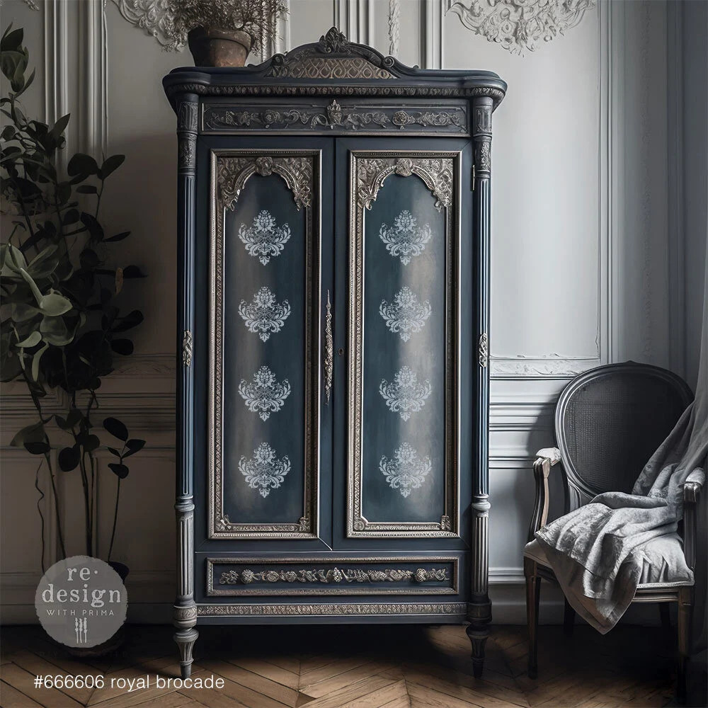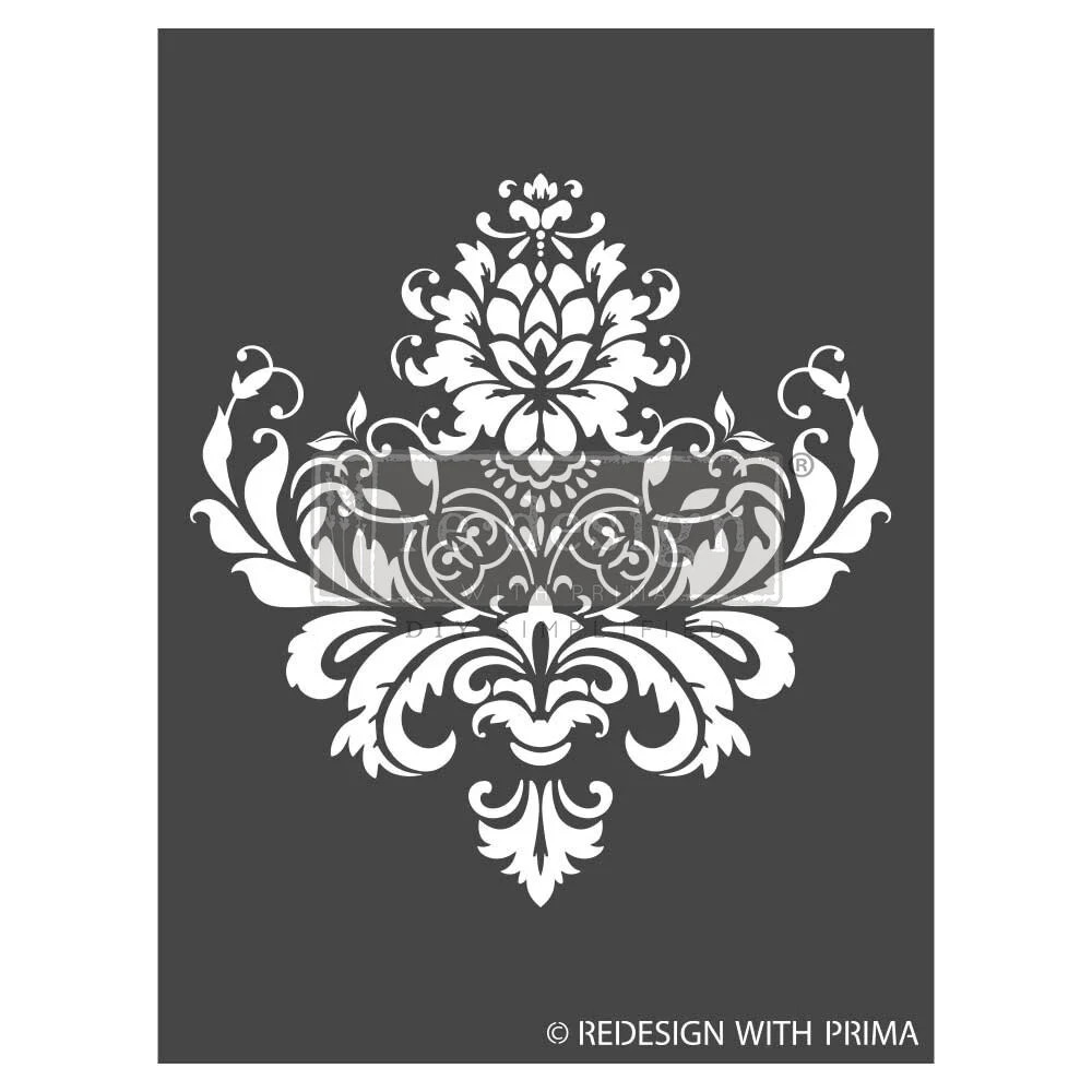 Re-Design with Prima Dekor Stencil 9"X12" - Royal Brocade - Decor Stencils (1 db). Kiváló minőségű, nagyméretű, részletgazdag sablonok. Használd bútordíszítéshez, lakásdekorációhoz, mixed media és kézműves projektekhez..