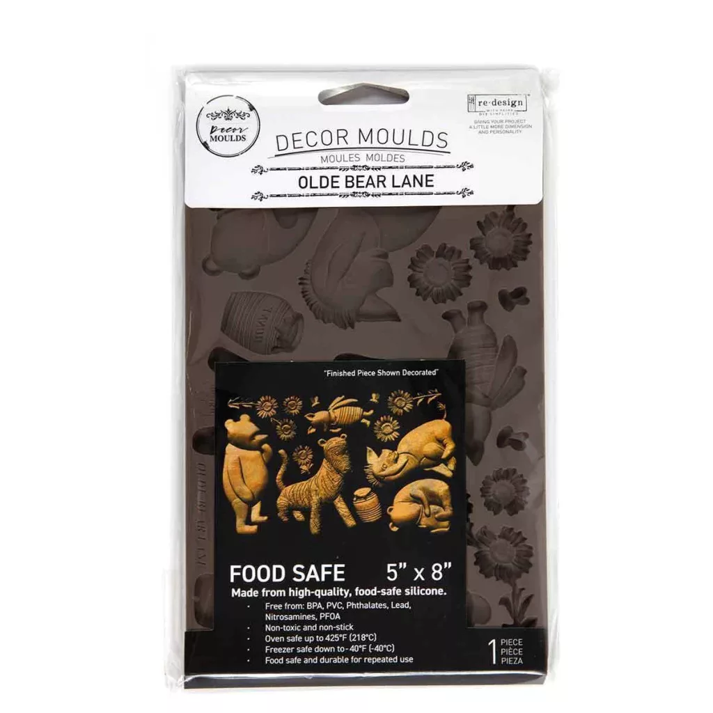 Az Olde Bear Lane szilikon öntőforma egy klasszikus, mesés hangulatú mackó és erdei barátai motívumvilágot jelenít meg. Részletgazdag kialakítása, rugalmas, hőálló és élelmiszerbiztos anyaga miatt ideális kreatív és dekorációs projektekhez.
