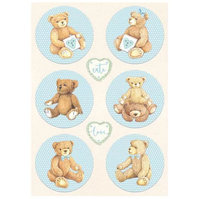 Rizspapír A4, DayDream kék macis körminták / Stamperia Rice Paper (1 ív).