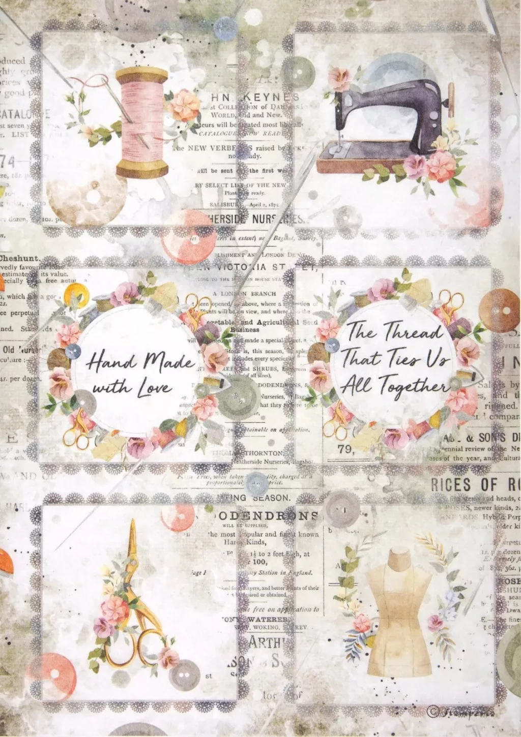Stamperia Rizspapír A4 - Romantic Threads mini cards - Rice Paper (1 ív)