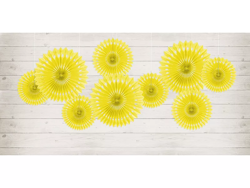 Rozetta papír dekoráció sárga 20-30cm (3 db)