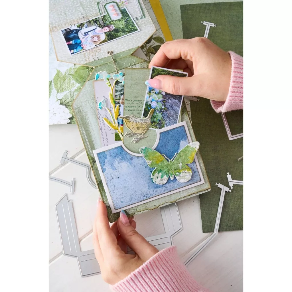 Készíts egyedi, cserélhető zsebeket scrapbook oldalaidra vagy kézműves albumjaidba a Sizzix • Thinlits Die Set – Snap and Swap Pockets segítségével! A 49 and Market tervezte szett 10 különböző sablont tartalmaz, melyekkel különféle zsebes elemeket, kihajtható részleteket és kreatív tárolókat hozhatsz létre.