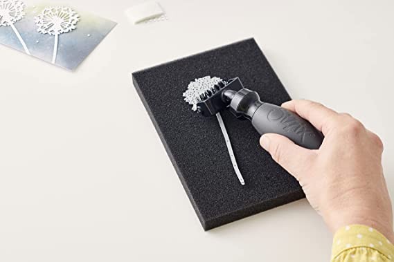 Ha a felesleges papír eltávolításáról van szó minden márkájú, vékony, kémiailag maratott vágósablonon esetén, a Sizzix Die Brush kefe könnyedén végzi ezt. Tartalmaz egy alátétet, amely tökéletes munkafelületként szolgál a felesleges papír eltávolításához a vágósablonokból és a kivágatból.