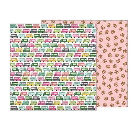 Scrapbook papír - Food On The Go. Mindkét oldalán mintás 30.5 cm-es kreatív / scrapbook albumpapír.