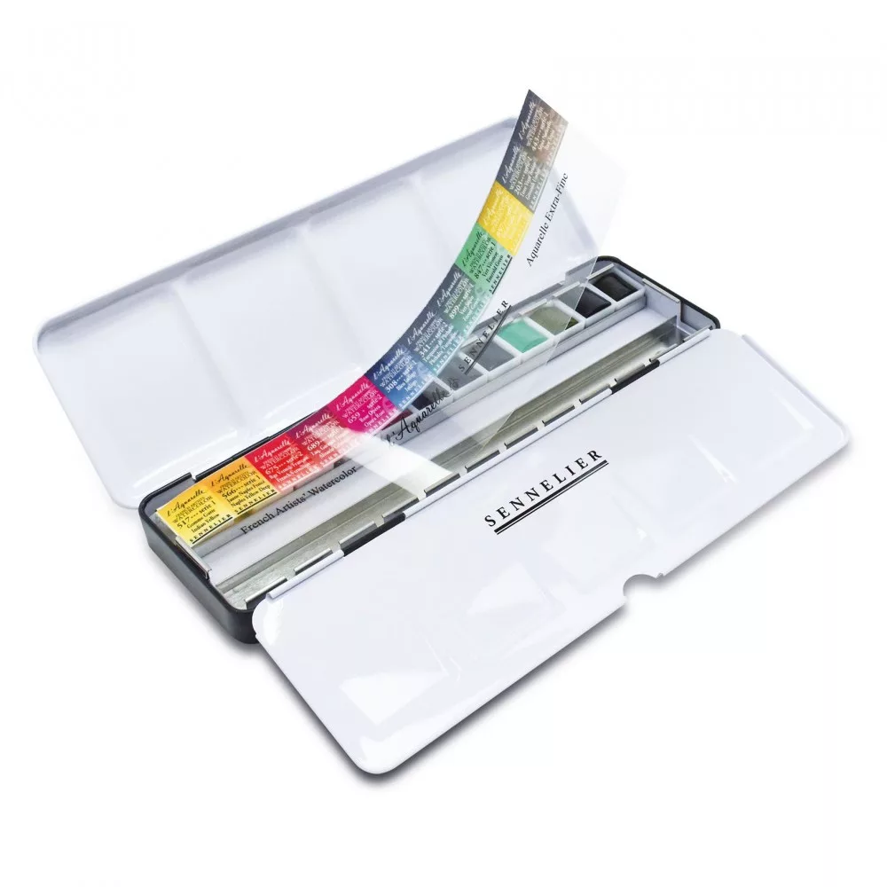 Sennelier L‘aquarelle akvarellfesték - 12 db, 1/2 szilkés fém dobozban