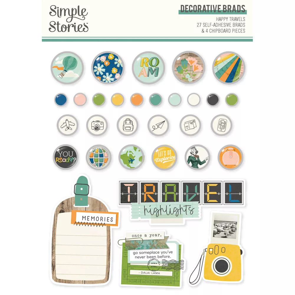 Simple Stories Happy Travels Díszítőelem Decorative Brads 1 csomag.
