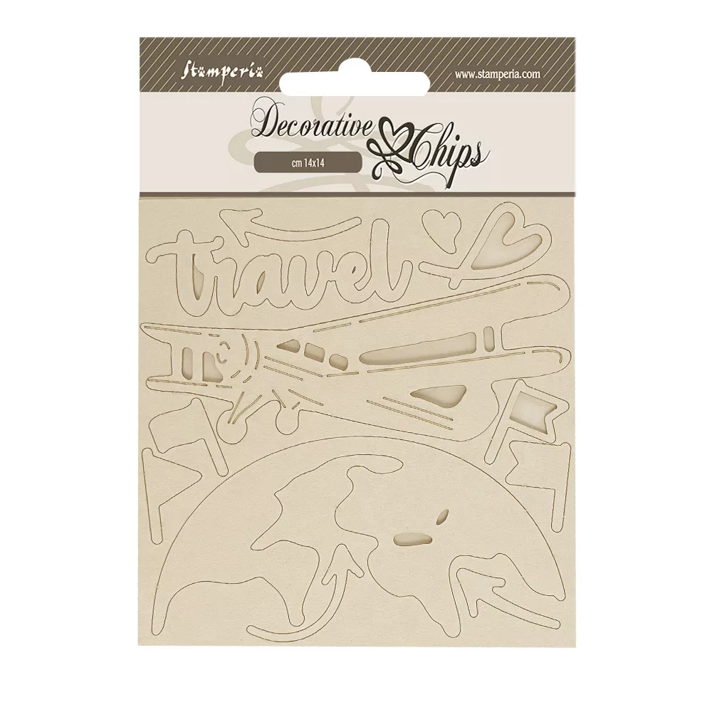 Stamperia Art of Travelling Chipboard 14x14 cm Airplane Decorative Chips (1 ív).