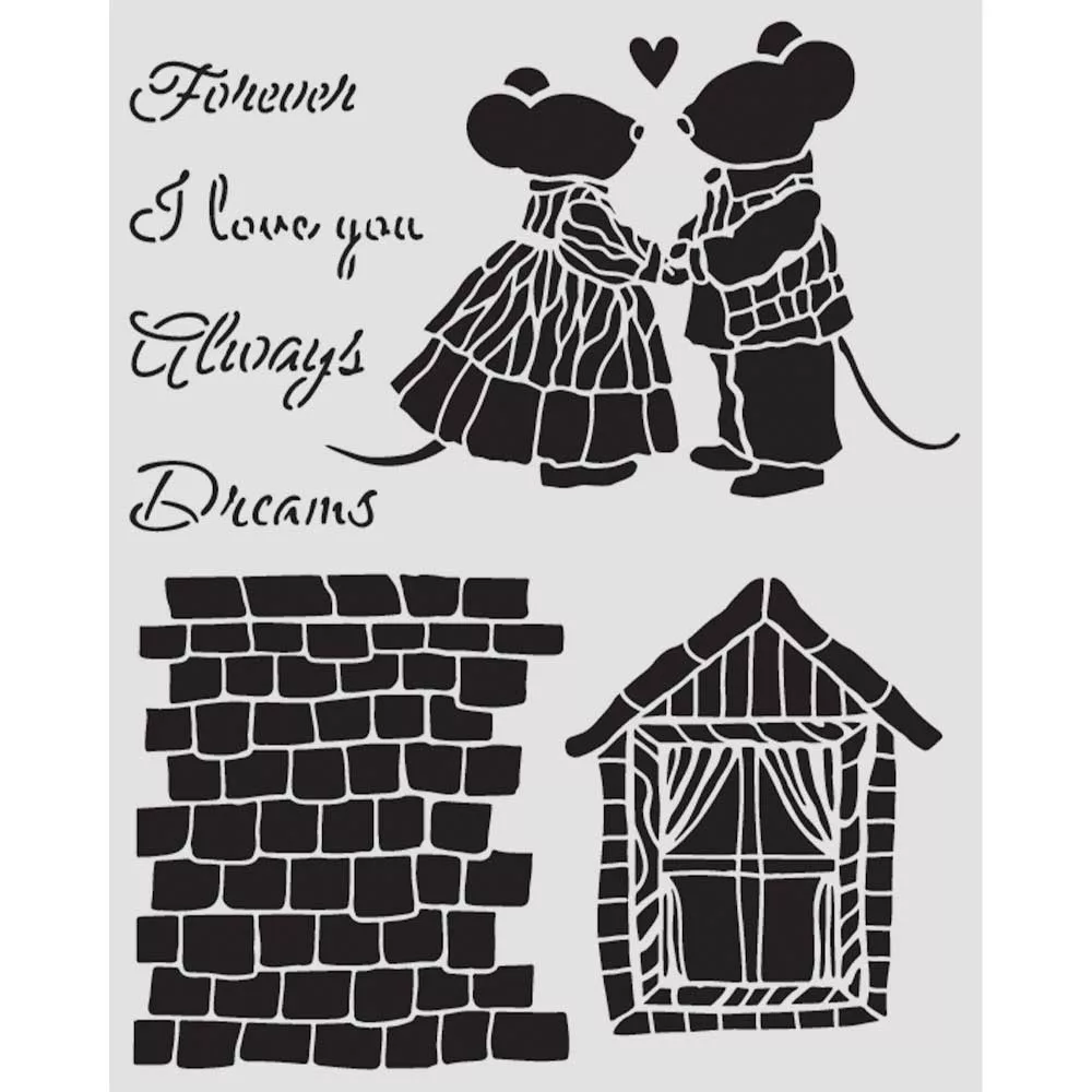 Stamperia Family Vastag stencil 20x25cm House and Mice Thick Stencil (1 db).